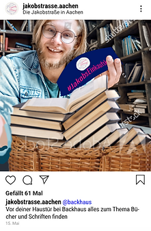 wurden letzten Endes von der Marketing-leitung in Form eines Werbefilms auf Facebook und der Webseite der Jakobstraße umgesetzt. Insbesondere der Hund, der als Jakob ein Maskottchen werden soll, genoss viel Beliebtheit. Das Thema umgesetzten Films ist nunmehr, dass jedes Geschäft eine Schatzkiste vor die Ladentür stellt. Diese ist gefüllt mit Geschenken, die von den Besuchern ausgegraben werden können.